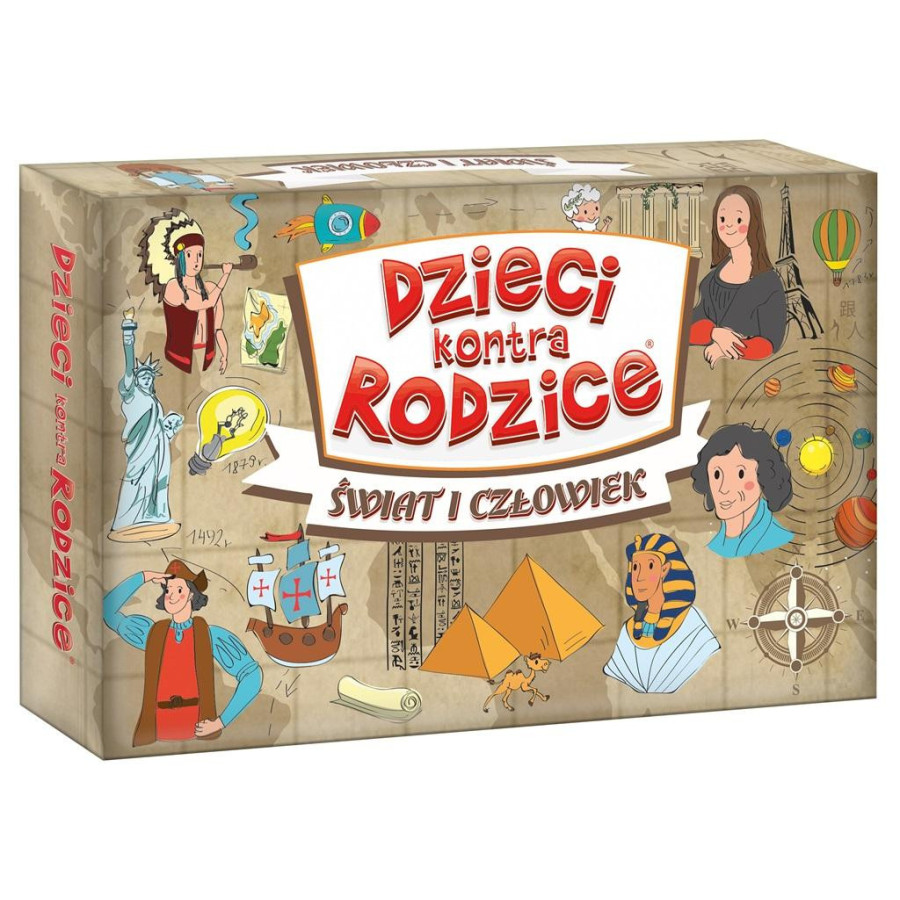 Gdzie po raz pierwszy rozegrały się starożytne igrzyska olimpijskie? Jak nazywali się skandynawscy wojownicy w hełmach z rogami? Co jest najstarszym instrumentem muzycznym? Dokąd podróżował Marco Polo? Co wynalazł Tomasz Edison? Wciągająca gra edukacyjna o rozwoju człowieka, odkrywaniu świata i najważniejszych wynalazkach. Zagrajcie i przekonajcie się, kto wie najwięcej o znaczących postaciach, i najpiękniejszych miejscach na Ziemi oraz najważniejszych wydarzeniach w historii! Dzieci rywalizują z rodzicami. W grze znajdziecie pytania przygotowane specjalnie dla dzieci i dla rodziców.
