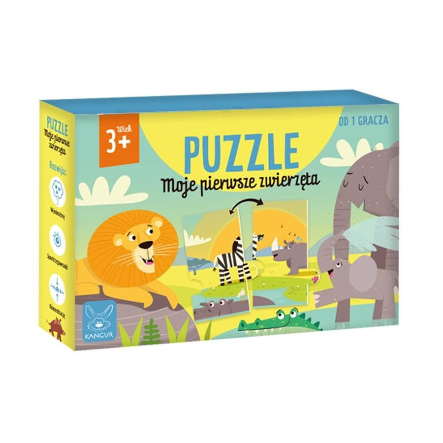 Dzieci uwielbiają słonie, zebry i żyrafy, a układanie bawi i uczy. Gra rozwija wyobraźnię, spostrzegawczość i koncentrację. Dodatkowo dziecko poprzez zabawę poszerza wiedzę. Duża ( 80+ cm ) układanka składa się z 12 elementów, które przedstawiają dzikie zwierzęta.