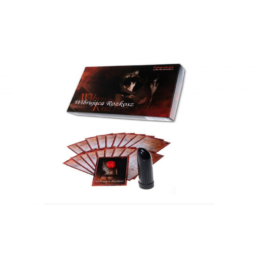 Wibrująca rozkosz to gorąca gra karciana, która odkryje przed Wami radość wspólnej zabawy z użyciem wibratora. Dzięki niej wspólnie poznacie nowe pomysły na zabawę we dwoje w rozkosznie wibrującym rytmie. Rozwijajcie swoją wiedzę erotyczną i pogłębiajcie wachlarz pikantnych zabaw! Na kartach znajduje się aż 36 miłosnych zadań, które zapewnią Wam niezapomnianą łóżkową przygodę. Wibrator to radośnie drgające urządzenie, które potrafi spotęgować rozkoszne doznania u obojga partnerów. Zdziwicie się na ile sposobów można go wykorzystać Już dziś wibrator przestanie być domeną kobiet, a stanie się towarzyszem Waszych wspólnych rozkosznych chwil. Wibrująca Rozkosz to pełny pakiet niebanalnych pomysłów na erotyczną zabawę. Skorzystajcie! Z pewnością warto odkryć coś nowego. Podczas zabawy zapewniamy: rozkoszne figielki, namiętne igraszki, wibrujące drgania, gorące doznania. Wibrator w zestawie. Gra tylko dla dorosłych.