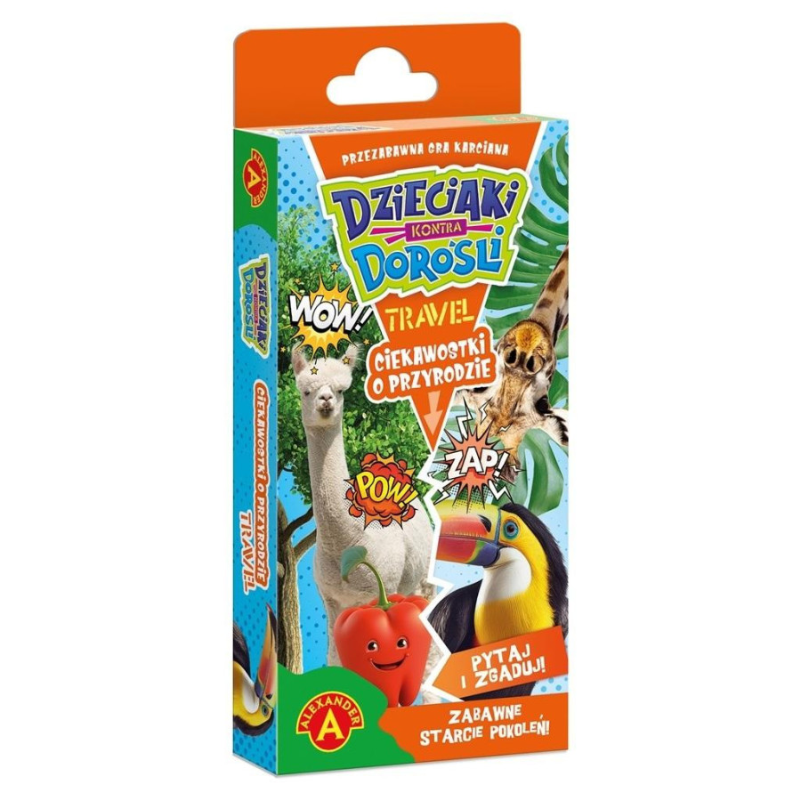 "Dzieciaki Kontra Dorośli - Ciekawostki o Przyrodzie Travel" to gra planszowa, która zapewni świetną zabawę całej rodzinie. Dzieci rywalizują z dorosłymi, odpowiadając na ciekawe pytania dotyczące przyrody. Dzięki dwóm oddzielnym zestawom kart z pytaniami o innym poziomie trudności dedykowanym dzieciom oraz rodzicom, szanse na wygraną są takie same dla obu drużyn.