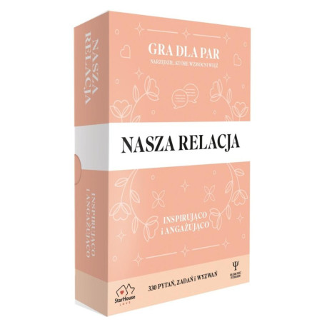 Zaangażowanie to fundament każdej trwałej relacji, obok intymności i namiętności. To dzięki harmonijnemu współdziałaniu możecie razem pokonywać trudności i cieszyć się sobą na co dzień. Często jednak codzienna rutyna i pośpiech skutecznie hamują prawdziwe zaangażowanie w relację. NASZA RELACJA oferuje Wam coś, czego często brakuje pomysły na wspólne, twórcze spędzanie czasu. Dzięki tej grze w łatwy i przyjemny sposób odnajdziecie sposób na przełamanie stagnacji i poczujecie się jeszcze bliżej siebie. 330 pytań, zadań, wyzwań i ćwiczeń, zaprojektowanych przez psychologów specjalizujących się w grach dla par, to prawdziwa skarbnica inspiracji na każdą okazję.