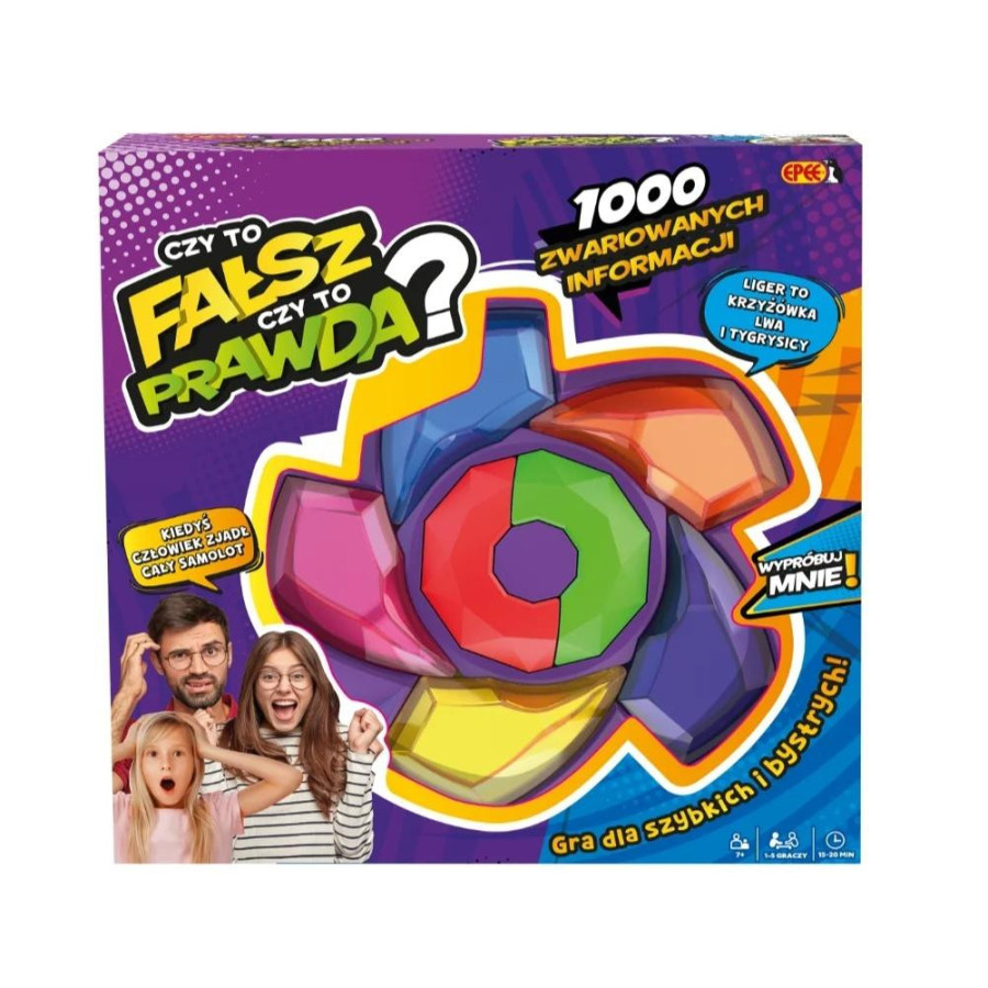 Czy to fałsz, czy to prawda? to gra, która zbliża pokolenia dzieci, rodzice i dziadkowie mogą wspólnie śmiać się, uczyć i rywalizować. Doskonała na rodzinne wieczory, imprezy czy podróż.