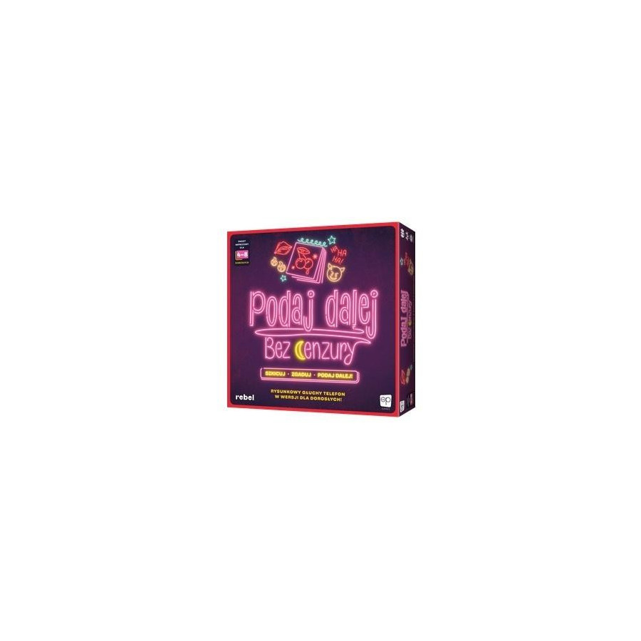 Podaj dalej! Bez cenzury to wyjątkowa gra skojarzeniowa, która dorosła i nabrała naprawdę specyficznego poczucia humoru. Podczas zabawy wszyscy jednocześnie rysujemy wylosowane hasła, a następnie staramy się odgadnąć, co narysowali przeciwnicy. Zanim dotrzemy do ostatniej strony szkicownika, czeka nas mnóstwo dziwnych skojarzeń, zabawnych pomyłek i niedopowiedzeń, zwłaszcza że większość haseł na pierwszy rzut oka kojarzy się tylko z jednym