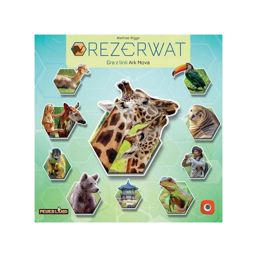 Rezerwat to gra planszowa, w której tworzysz nowoczesne, tętniące życiem zoo idealne i dla zwierząt, i dla odwiedzających. Do dyspozycji masz 135 unikalnych kafelków: zwierzaków, budynków i projektów. Ułóż z nich najlepszą kombinację kafli i zapunktuj lepiej niż konkurenci. Rezerwat opiera się na bestsellerowej Ark Novie: na nowo podejmuje wiele jej rozwiązań, nieco je upraszcza i zmienia w planszowe wyzwanie.