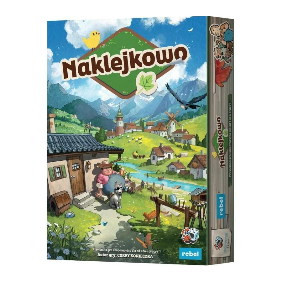 Naklejkowo to przytulna gra rodzinna, w której wspólnie rozwijamy wioskę, odkrywając przy okazji historie jej mieszkańców. Opowieść będzie toczyła się na przestrzeni 10 lat, a każda podjęta przez nas decyzja wpłynie na opisywane wydarzenia i zadowolenie poszczególnych osób, prowadząc nas do 1 z 5 unikalnych zakończeń. Postęp będziemy odnotowywali za pomocą naklejek, umieszczając na mapie kolejne budynki i postacie, a także zapisując kamienie milowe naszej opowieści.