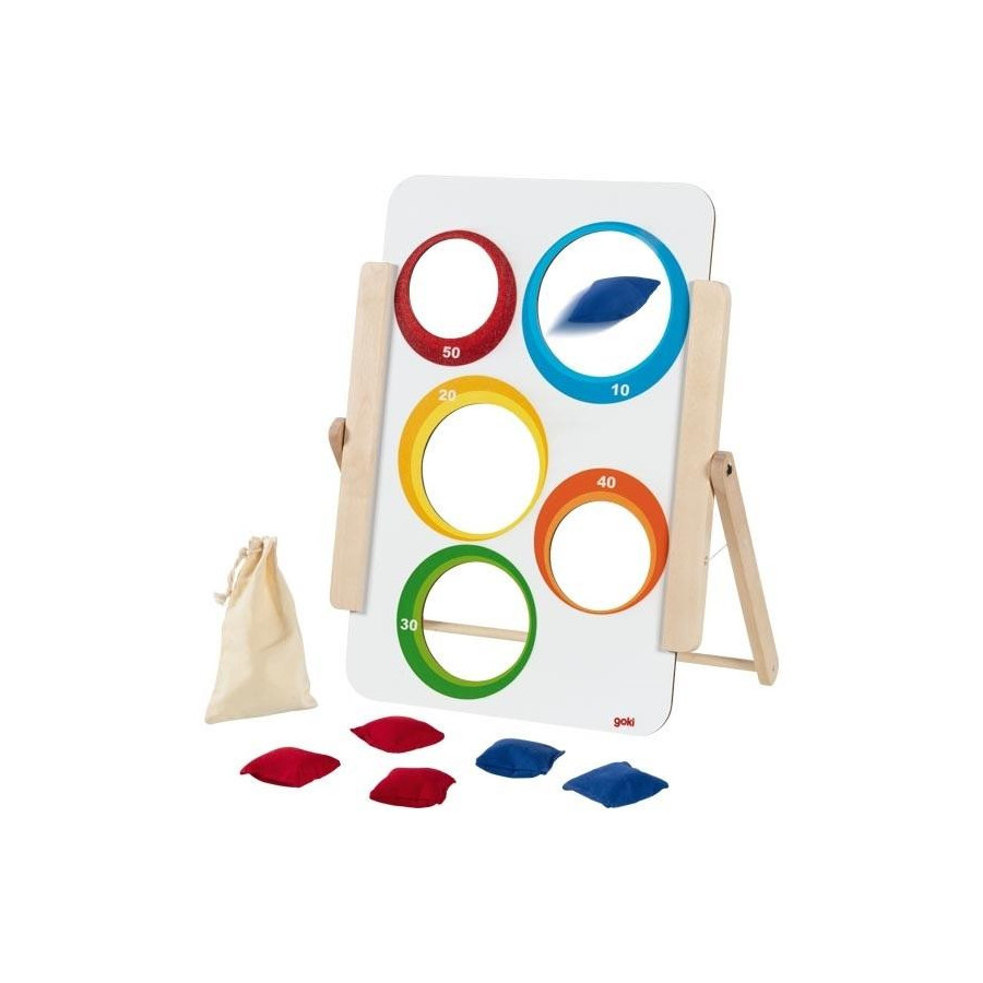 Gra w rzucanie Goki jest świetną zabawą zarówno dla młodszych jak i dla starszych, ma dwa poziomy trudności. Zestaw składa się z planszy z pięcioma otworami oraz zestawu woreczków w dwóch kolorach. Woreczki są w dwóch kolorach. Otwory mają różne punktacje, zatem zależnie od otworu do którego ucelujemy woreczkiem, możemy zdobyć różną ilość punktów. Jest to gra zręcznościowa, ale również towarzyska, bo może być wspaniałą zabawą dla całej rodziny. To jak? Gotowi do wspólnej zabawy?