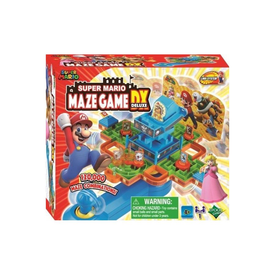 Super Mario Maze Game to wspaniała gra zręcznościowa dla dużych i małych. Księżniczka Peach jest uwięziona w wieży i trzeba ją uwolnić! Labiryntem można poruszać za pomocą joysticka. Jeśli uda się poprowadzić kulkę przez labirynt na szczyt wieży, więzienie księżniczki Peach się otworzy. Ale uwaga! W każdym labiryncie znajdują się małe pułapki, które zatrzymują kulkę. W Maze Game można zmieniać labirynty tak, by stworzyć indywidualną grę. Możliwych jest ponad 120000 kombinacji. Gra zawiera 5 figurek Super Mario można je również wykorzystać we wszystkich innych grach towarzyskich EPOCH Super Mario z oznaczeniem Link System. Graj. Kolekcjonuj. Łącz. Zalecany wiek od 4 roku życia.