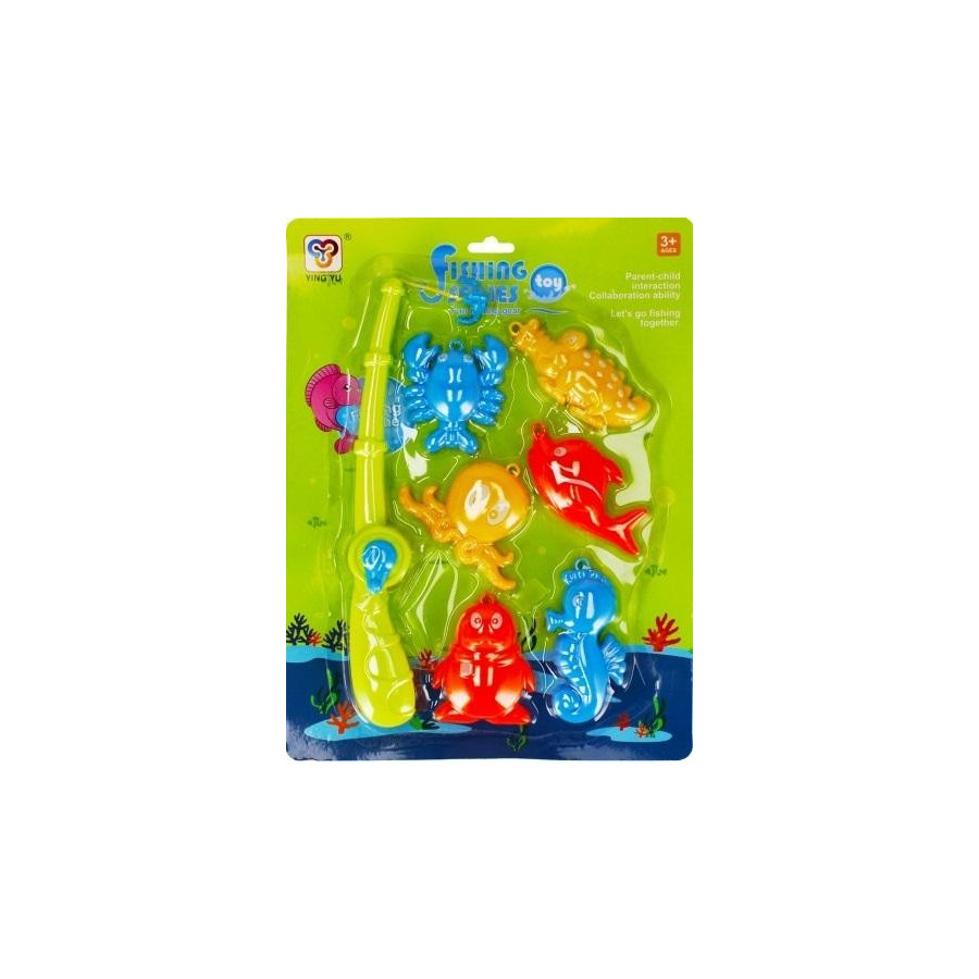 W zestawie znajdują się wędka oraz 6 zwierzątek morskich: krab, krokodyl, ośmiornica, rybka, pingwinek, konik morski . Wszystkie zwierzątka wodne posiadają zaczepy, dzięki którym łatwo złowić je na haczyk wędki. Produkty wykonane z plastiku.