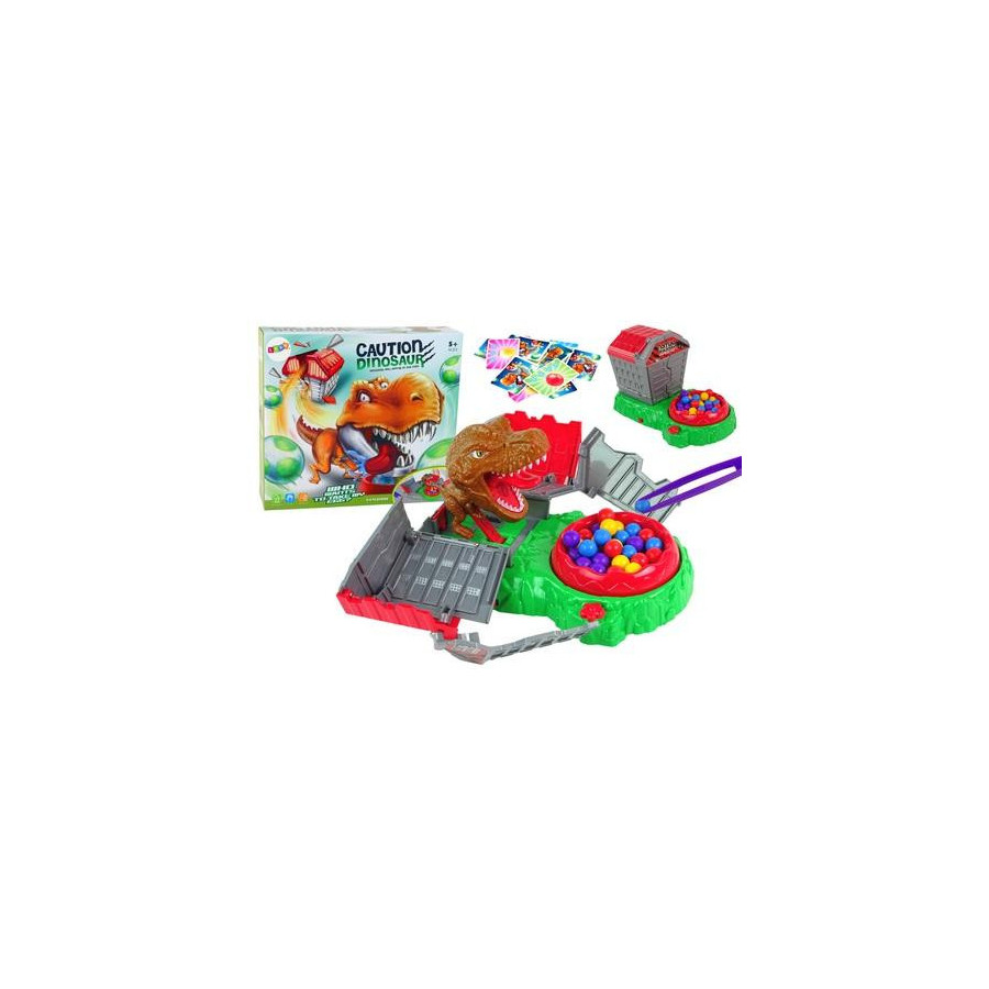 Gra Zręcznościowa Ostrożnie Dinozaur Jaja Super gra zręcznościowa, która trzyma w napięciu oraz ćwiczy zręczność. Spróbuj zebrać jak największą ilość jaj dinozaura, zanim on Cię złapie. Sprawdź, jaką masz sprawność manualną. Świetny prezent dla dzieci, który rozwija je wielopłaszczyznowo i do tego daje dużo radości i frajdy. Pozwoli spędzić więcej czasu z rodziną i przyjaciółmi, ucząc jednocześnie celności, precyzji i rozwijając koordynację ruchową. Gra zręcznościowa przeznaczona dla 2-4 graczy. Zabawa polega na tym, aby najszybciej zebrać jaja dinozaura. Zadanie nie jest takie łatwe, nie wiadomo, w którym momencie dinozaur wyskoczy ze swojej kryjówki i Cię złapie ! Jak grać? W pierwszej kolejności należy podzielić między siebie szczypce i karty. Każdy losuje jedną kartę, na niej znajduje się kolor jaja i liczbę kwiatów, która reprezentuje uzyskany wynik, jeśli złapiesz jajo. Plansza zaczyna się kręcić, co jest jeszcze większym utrudnieniem. Musisz wykazać się refleksem i precyzją, aby złapać jajo za pomocą szczypcy. Wygrywa ten, który zdobędzie najwięcej punktów i jaj, oczywiście, jeśli nie zaskoczy go dinozaur! Elementy zestawu: - plansza - klatka - dinozaur - 24 karty - 7 jaj z każdego koloru - szczypce x 4 Wymiary gry: 26 cm x 14 cm x 15 cm Wymiary opakowania: 34 cm x 31 cm x 9 cm Gra przeznaczona dla 2-4 osób. Dla dzieci powyżej 5 roku życia. Zgodna z normą EN71 i certyfikatem CE. Zasilana trzema bateriami 1,5 V AA, brak w zestawie.