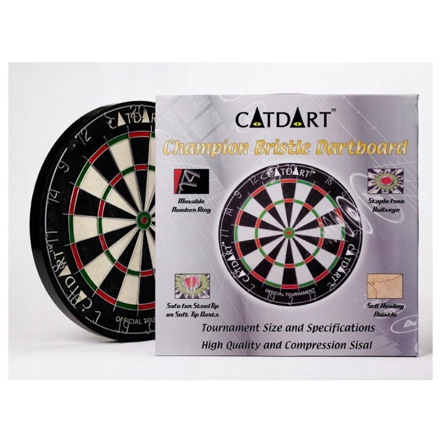 "Profesjonalna tarcza do rzutek wykonana z naturalnego włókna sizalowego z ruchomym pierścieniem numerycznym i bezzszywkową tarczą. Oficjalny rozmiar turniejowy (45.5 x 4cm).