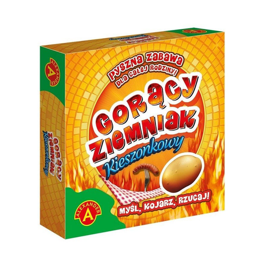 Wielki hit sprzedażowy, który teraz zmieści się nawet do Twojej kieszeni! To przezabawna gra rodzinna sprawdzająca refleks. Zakręć bączkiem lub ustaw czas w aplikacji, odkryj pytanie i odpowiadaj czym prędzej! Każda osoba, która udzieli poprawnej odpowiedzi, przerzuca gorącego ziemniaka do najbliższego sąsiada. Ten, kto nie zdąży odpowiedzieć, zanim czas się skończy, zostaje ze spalonym ziemniakiem i na planszy spada coraz bliżej grilla. W tej zabawie wygrywa gracz, który wykonał najmniej ruchów własnym pionkiem. Prosta, ale niezwykle wciągająca rozgrywka przypadnie do gustu każdemu, niezależnie od wieku.