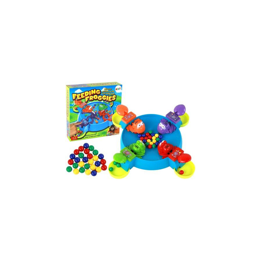 Gra Zręcznościowa Głodne Żabki Nakarm Żabkę Kulki Zręcznościowa i zabawna gra planszowa. Rozwija wzrok, percepcję i koordynację ruchową Twojego dziecka w zabawny i przyjemny sposób. Gra pomaga rozwijać koordynację wzrokowo-ruchową u dzieci i umiejętności strategicznego myślenia podczas gry. Bardzo dobra interaktywna zabawka edukacyjna dla rodziców i dzieci. Zasady gry są bardzo proste, co sprawia, że jest łatwa do zrozumienia nawet dla najmłodszych uczestników. Na planszy umieszcza się kolorowe kulki, a celem jest zebrać jak najwięcej z nich, kontrolując ruchy swojej żabki. Gra zachęca do współpracy i rywalizacji, co sprzyja rozwijaniu umiejętności społecznych. Główne korzyści płynące z gry to rozwijanie wzroku, percepcji oraz koordynacji ruchowej dziecka. Żabki, które połykają kolorowe kulki, pobudzają dzieci do skoncentrowanego i celowego działania, co wspiera rozwój umiejętności poznawczych. Dodatkowo, decyzje strategiczne podczas gry kształtują umiejętność logicznego myślenia. Charakter gry sprawia, że dzieci uczą się współpracy, rywalizacji i zdobywania umiejętności strategicznego planowania, co może być wartościowe zarówno w sferze edukacyjnej, jak i społecznej. "Głodne Żabki" stają się więc nie tylko źródłem rozrywki, ale także narzędziem do wszechstronnego rozwoju dzieci w przyjemny sposób. Zawartość zestawu: - 28 kolorowych kulek - plansza z żabkami (37 cm x 37 cm x 7 cm) - oryginalne opakowanie (32 cm x 31 cm x 7 cm) Posiada certyfikat CE, ponadto jest zgodny z normą EN71. Przeznaczony dla dzieci powyżej 3 roku życia.