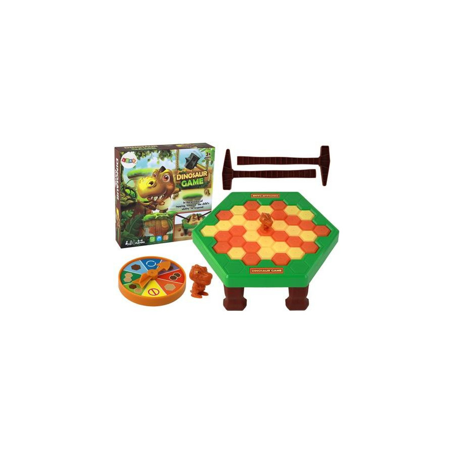 Gra Zręcznościowa Dinozaur W Kłopotach Zbijanie Młotkiem Zapraszamy do odkrycia fascynującej gry zręcznościowej Dinozaur w Kłopotach. Ta pasjonująca zabawa nie tylko dostarczy Twojemu dziecku rozrywki, ale także rozwija zręczność, motorykę oraz umiejętności obserwacji. Przenieś się w świat przygody, gdzie dinozaur znalazł się w kłopotach, tracąc grunt pod nogami. Twoje zadanie to ostrożne wybicie kamieni młoteczkiem, aby uratować go przed upadkiem. Gra przeznaczona jest dla 2-4 graczy, co sprawia, że to doskonały sposób na wspólne spędzanie czasu z rodziną i przyjaciółmi. Dynamiczna rozgrywka trzyma w napięciu, a rywalizacja ocalenia dinozaura dodaje emocji przy każdym uderzeniu młotkiem. Obracając strzałką, odkrywasz, jaki kolor kamienia musisz wybić. Twoja zdolność obserwacji oraz precyzja ruchów stają się kluczowe. Gra nie tylko dostarcza wspaniałej zabawy, ale także wspomaga rozwój umiejętności sensorycznych i koordynacji ręka-oko. Dodatkowo, Dinozaur W Kłopotach może być stosowany jako narzędzie edukacyjne, uczące dzieci rozróżniania kolorów i liczenia. Estetyczne wykonanie gry oraz atrakcyjne opakowanie sprawiają, że idealnie nadaje się na prezent dla maluchów. Odkryj razem z nami fascynujący świat Dinozaur w Kłopotach. Zaproś radość i naukę do domu, sprawiając, że każdy dzień staje się pełen emocji i uśmiechu! Elementy zestawu: 1x tarcza do losowania 1x podstawka 4x nóżki do podstawki 1x dinozaur 2x młotki 19x brązowe klocki 19x żółte klocki Wymiary gry: 20 cm x 20 cm x 8 cm Wymiary opakowania: 25,5 cm x 25,5 cm x 6 cm Posiada certyfikat CE, ponadto jest zgodny z normą EN71. Przeznaczony dla dzieci powyżej 3 roku życia.