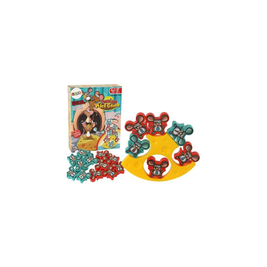 Gra Zręcznościowa Myszki Balansujące Serowa Wieża 12 ele. Lekcja Matematyki Sprawdźcie swoją cierpliwość, zręczność i spryt przy sporej dawce adrenaliny, doskonałej zabawy i salw śmiechu. Ta zabawna gra zręcznościowa zachwyci zarówno dzieci jak i dorosłych. Zasady gry są bardzo proste. Najpierw kładziemy na stole kawałek sera. Następnie gracze naprzemiennie układają na chwiejącym kawałku swoje myszki. Cała konstrukcja jest ruchoma i niestabilna więc to wcale nie takie proste zadanie. Przegrywa osoba, która przewróci myszkową wieżę. Gra może służyć również jako lekcja matematyki. Na myszkach umieszczone są liczby. Dzieci mogą układać je w kolejności rosnącej, malejącej lub wykonywać proste działania matematyczne. Gra pozytywnie wpływa na cierpliwość, umiejętność logicznego myślenia oraz koncentrację dziecka. Ćwiczy małą motorykę oraz koordynację oko-ręka. Jest ciekawą alternatywą dla siedzenia przed ekranem komputera czy telewizora oraz wspaniałym pomysłem na wspólne spędzanie wolnego czasu. Zawartość zestawu: - 12 myszek - kawałek sera - zestaw naklejek - oryginalne opakowanie Wymiary myszki: 6 cm x 5 cm x 1,5 cm Wymiary opakowania: 19 cm x 25 cm x 6 cm Zgodne z normą EN71 i certyfikatem CE. Przeznaczony dla dzieci powyżej 3 roku życia