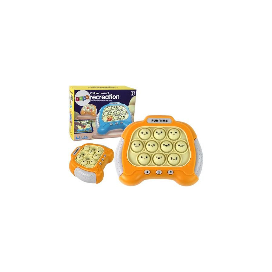 Gra Sensoryczna Konsola Pop It Na Baterie Światła Dźwięki Żółta Gra sensoryczna w postaci konsoli Pop It w kolorze żółtym. Ta innowacyjna zabawka nie tylko zachwyci dzieci, ale również dostarczy rozrywki i relaksu dorosłym. Konsola Pop It ma wyjątkowy wygląd, przypominając konsolę do gier, co sprawia, że jest atrakcyjna wizualnie. Główną cechą wyróżniającą tę zabawkę jest jej gumowe guziczki, które zastępują tradycyjny wyświetlacz. Te guziczki można wypychać i wciskać, co stanowi niesamowite doświadczenie sensoryczne i stymuluje zmysły dotyku. Po włożeniu trzech baterii AAA (1,5V - brak w zestawie) do konsoli, rozpoczyna się magiczna rozrywka. Konsola odtwarza radosną melodię i podświetla minki znajdujące się na guzikach, co dodaje dodatkowej warstwy wizualnej i dźwiękowej zabawie. Nasza gra jest niezwykle prosta w obsłudze - wystarczy włożyć baterie i włączyć konsolę. Następnie możesz rozpocząć zabawę, wciskając gumowe guziczki w tylnej części zabawki. To właśnie ta część gry jest najbardziej fascynująca - zadaniem gracza jest wciskać guziczki w odpowiedniej kolejności, którą wskazuje czerwone światełko. To wymaga zarówno zręczności, jak i zdolności do rozpoznawania wzorców, co sprawia, że gra jest interaktywna i rozwijająca. Konsola Pop It to nie tylko doskonały środek zabijania nudy, ale także świetny sposób na rozwijanie zdolności koordynacji ruchowej i umiejętności logicznego myślenia. To również doskonały pomysł na prezent, który z pewnością zaskoczy i ucieszy zarówno dzieci, jak i dorosłych poszukujących nietypowych form rozrywki i relaksu. Nie przegap tej okazji! Zamów konsolę Pop It już dzisiaj i ciesz się godzinami rozrywki i zabawy w towarzystwie tej wspaniałej zabawki sensoryczne. Wymiary gry: 12 cm x 10 cm x 6 cm Wymiary opakowania: 13 cm x 10 cm x 6 cm Produkt posiada certyfikat CE i jest zgodny z normą EN71. Produkt odpowiedni dla dzieci powyżej 3. roku życia.