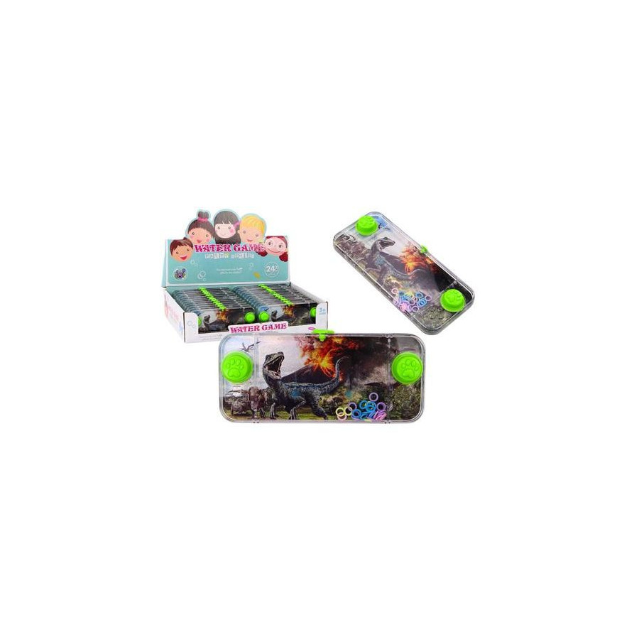 Gra Wodna Zręcznościowa Dinozaur Carnotaurus Konsola Pad Zielony To klasyczna wodna gra zręcznościowa z motywem dinozaura, często spotykana w formie niewielkiej, prostokątnej zabawki. Jej mechanizm jest prosty, ale bardzo wciągający. Gra ma kształt prostokąta, co sprawia, że jest wygodna do trzymania w dłoniach. Po prawej i lewej stronie urządzenia znajdują się dwa zielone przyciski, są kluczowe do gry i są łatwo dostępne dla palców gracza. W środku gry, w przezroczystym zbiorniku wypełnionym wodą, znajdują się kolorowe obręcze. Są one swobodnie unoszące się wewnątrz cieczy. W dolnej części gry wystają dwa szpice, na które należy nadziać obręcze. Szpice te są celami, do których gracz musi trafić obręczami. Gracz naciska zielone przyciski, aby wprawić w ruch obręcze. Naciśnięcie jednego z przycisków powoduje, że strumień wody wypycha obręcze w górę. Zadanie gracza polega na precyzyjnym dozowaniu siły nacisku na przyciski. Mocniejsze wciśnięcie przycisku powoduje, że obręcz porusza się wyżej, podczas gdy słabsze naciskanie skutkuje mniejszym ruchem. Wymaga to zręczności i wyczucia. Celem gry jest umieszczenie obręczy na dwóch wystających szpicach. Osiągnięcie tego celu wymaga precyzyjnego sterowania ruchem obręczy, co jest głównym wyzwaniem w grze. Gra rozwija zręczność, koordynację ruchową oraz cierpliwość. Jest prostym, ale efektywnym sposobem na zabawę, oferującym wiele godzin rozrywki dla dzieci i dorosłych. Pomimo swojej prostoty, wymaga precyzyjnej kontroli i umiejętności przewidywania ruchu obręczy, co sprawia, że jest wyzwaniem nawet dla bardziej wprawionych graczy. Wymiary gry: 15 cm x 7 cm x 1 cm Oferta dotyczy jednej sztuki, w opakowaniu zbiorczym znajdują się 24 gry. Posiada certyfikat CE, ponadto jest zgodny z normą EN71. Zabawka przeznaczona jest dla dzieci powyżej 3 roku życia.