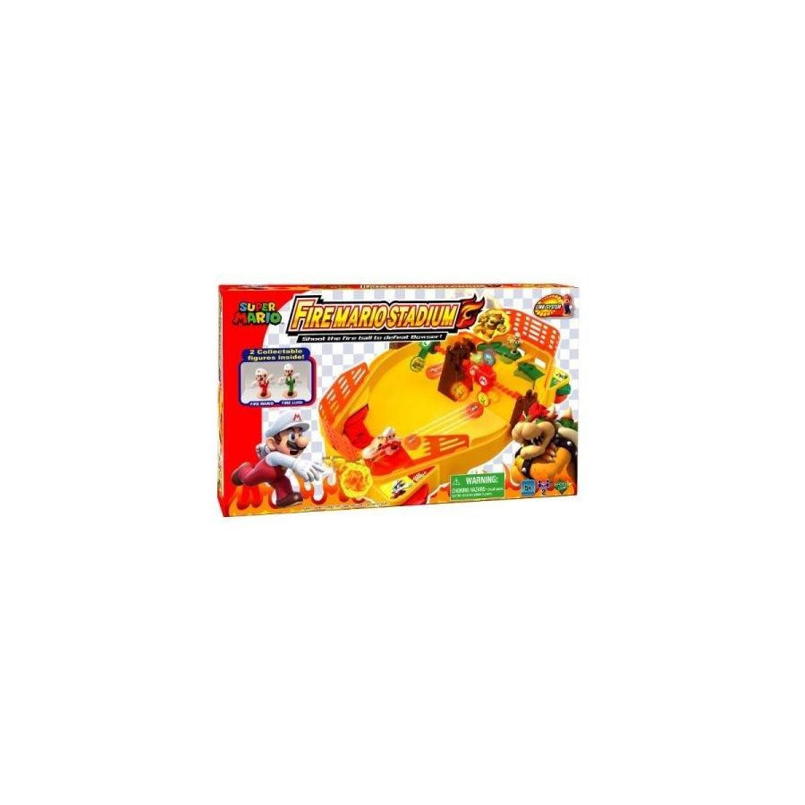 Gra zręcznościowa Super Mario Fire Mario Stadium zapewni doskonałą zabawę wszystkim miłośnikom tej popularnej licencji. Kto pierwszy pokona Bowsera, który ukrywa się na wieży? Uderz bączek w taki sposób, aby wprawił w ruch mechanizm uruchamiający zapadnię. Liczy się zręczność, precyzja, siła oraz strategia. Koordynuj wszystkie mechanizmy i przewiduj ruchy innych graczy! Wszystkie elementy gry uruchamiane są mechanicznie! Nie potrzebujemy baterii. Zestaw zawiera dwie figurki kolekcjonerskie Super Mario. Doskonała zabawa dla 2 lub 4 graczy. Grę Super Mario Fire Mario Stadium polecamy od 5 roku życia.