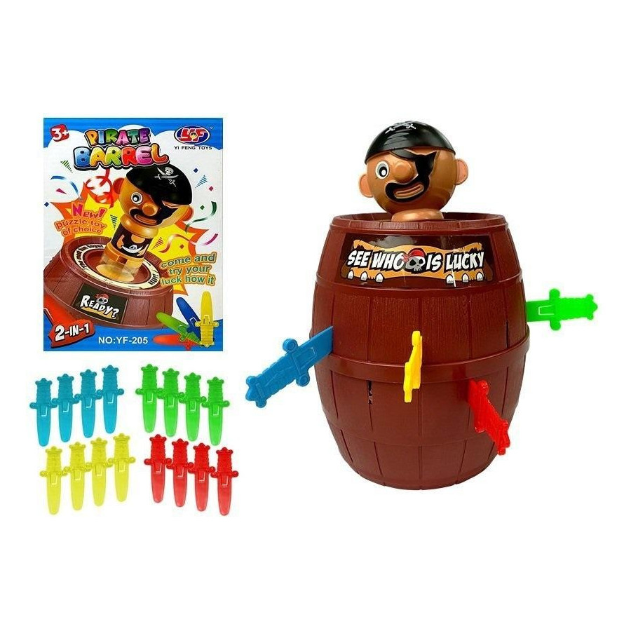 Gra Ukłuj Pirata Wyskakujący Pirat W dzisiejszych czasach główną rolę w zabawie dzieci odgrywają telefony czy komputery, zatem warto zachęcić dzieci do spędzenia czasu w bardziej klasyczny sposób, czyli na wesołej i pełnej emocji grze, w którą może zagrać od 2 do 4 osób! Dodatkowo gra ćwiczy potrzebne dziecku umiejętności. To fantastyczna gra zespołowa, przy której świetnie bawić będą się nie tylko dzieci, ale i cała rodzina! Wyjątkowo wesoła gra ze Śmiesznym Piratem! Wbijaj delikatnie szpady do beczki. Szykujcie się na prawdziwą beczkę śmiechu, przy której nikt nie usiedzi spokojnie, zastanawiając się, kiedy wyskoczy pirat! Ten, którego ruch spowoduje wyskoczenie Pirata - przegrywa bądź wygrywa! Dodatkową zaletą jest druga opcja gry, wystarczy obrócić beczkę z drugiej strony. W skład zestawu gry wchodzi: - pirat - beczka z otworami - 16 kolorowych szpad ( po 4 sztuki w danym kolorze: żółty, czerwony, zielony i niebieski) - tarcza do koła fortuny z kolorami Zasady pierwszej gry: 1. W grę może zagrać od 2 do 4 osób. 2. Wygrywa bądź przegrywa gracz, któremu wyskoczy pirat - ustal zasadę. 3. Umieść pirata w beczce tak, aby wystawała głowa, następnie przekręć kilkukrotnie. 4. Rozdaj każdemu z graczy szpady. 5. Każda z uczestniczących w grze osób po kolei wkłada w beczkę po jednej szpadzie. 6. Trafiony szpadą pirat automatycznie wyskakuję z beczki. 7. Wygrywa bądź przegrywa gracz, któremu wyskoczy pirat przy wbijaniu szpady. Zasady drugiej gry: 1. Obróć beczkę, w taki sposób, aby na górze znajdowało się koło fortuny z zadaniami bądź umieść na nią tarcze z kolorami (do wyboru gra z zadaniami bądź kolorami) 2. Umieść wszystkie szpady w beczce. 3. Gracz kręci kołem fortuny: wykonuje zadanie, bądź wyciąga szpadę z odpowiednim kolorem. Jeżeli nie ma już odpowiedniego kolory, traci ruch. 4. Wygrywa osoba, która ma najwięcej zdobytych szpad. Wymiary elementów gry: - pirat: wysokość - 11 cm - beczka: średnica - 16 cm wysokość - 17 cm - szpada: długość - 7,5 cm Wymiary opakowania gry: 15.5 cm x 15 cm x 22 cm Gra przeznaczona jest dla dzieci powyżej 3. roku życia. Zabawka posiada certyfikat CE i jest zgodna z normą EN 71. Zapakowana jest w kartonik, dzięki czemu nadaje się na prezent dla dziecka.