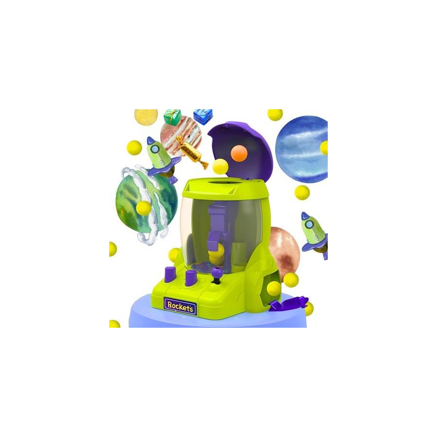Zabawka wyposażona jest w chwytak, który pozwala dzieciom spróbować swoich sił w łapaniu ulubionych zabawek. Z przodu znajduje się panel sterowania. To idealna okazja do rozwijania zdolności motorycznych i koncentracji, jednocześnie dostarczając wiele frajdy i uśmiechu na twarzach dzieci. Maszyna wygląda jak rakieta, co z pewnością zainteresuje wszystkich fanów kosmosu, a na dodatek będzie doskonałą zabawką jako figurka.