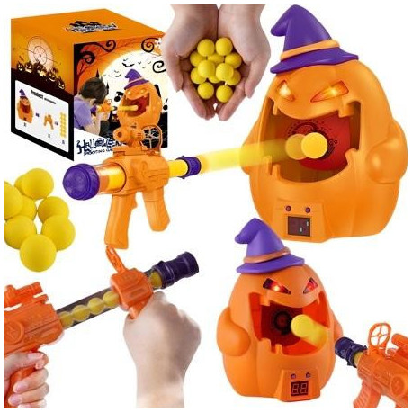 W skład zestawu wchodzi dynia z licznikiem celnych strzałów, specjalny pistolet na piłeczki oraz 12 piłeczek z pianki. Celem zabawy jest trafienie jak najwięcej razy w cel, a każdy celny strzał wyświetli się na wyświetlaczu i spowoduje wydanie dźwięku. Efekty świetlne i dźwiękowe dodają emocji do rozgrywki i sprawiają, że gra staje się jeszcze atrakcyjniejsza.