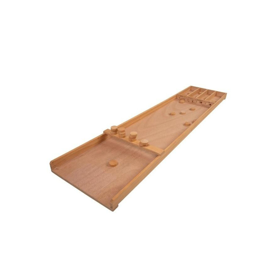 Sjoelbak, bo tak oficjalnie nazywa się ta gra, oznacza nic innego jak deskę, na której gramy. Do tego mamy do dyspozycji 20 drewnianych krążków lub jak kto woli dysków o średnicy 2,9 cm.
