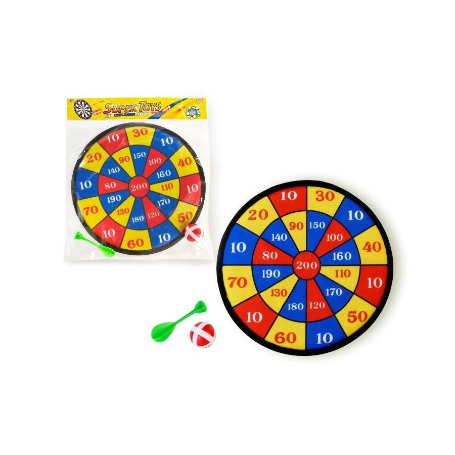 W zestawie: tarcza, piłka na rzep, strzałka na rzep, Pozostałe informacje: śr. tarczy 28 cm, wym. opak. folia 29,5 x 33,5 x 4 cm, 3+