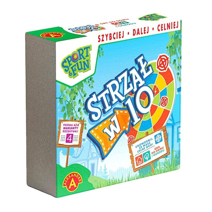 Dzięki poręcznej formie i prostej zasadzie rozgrywki, Strzał w 10 świetnie sprawdza się zarówno w domowym salonie, jak i na świeżym powietrzu w ogrodzie, na trawie czy podczas rodzinnego pikniku. Niezależnie od miejsca, gra zawsze wnosi energię, śmiech i pozytywną atmosferę.