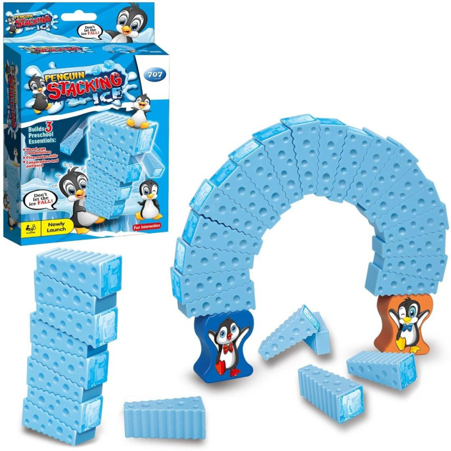Gra Zręcznościowa "Penguin Stacking Ice" - Wieża z Lodu dla Pingwinków! Zabawa, która wciągnie i rozwinie każdego malucha! Przedstawiamy "Penguin Stacking Ice" - fascynującą grę zręcznościową, w której zadaniem jest budowanie wież i konstrukcji z "lodowych" klocków, tak aby urocze pingwinki nie spadły! To doskonały sposób na rozwijanie koncentracji, precyzji i myślenia przestrzennego u dzieci. Cechy produktu: Zasady gry: Gracze kolejno dokładają "lodowe" klocki, starając się zbudować jak najwyższą lub najbardziej stabilną konstrukcję. Celem jest utrzymanie pingwinków na szczycie lub w ramach budowli bez jej zawalenia. Gra może być modyfikowana - budowanie wież, mostów, czy innych kształtów. Elementy zestawu: W komplecie znajduje się wiele niebieskich, "lodowych" klocków o unikalnej fakturze, przypominających bloki lodu, oraz figurki uroczych pingwinków, które pełnią rolę podpór lub balastu. Rozwój kluczowych umiejętności: o Koordynacja ręka-oko: Precyzyjne układanie klocków wymaga skupienia i dokładności. o Logiczne myślenie: Dziecko uczy się przewidywać, jak ruch wpłynie na stabilność konstrukcji. o Kreatywność: Możliwość tworzenia różnorodnych budowli z "lodowych" klocków rozwija wyobraźnię przestrzenną. o Cierpliwość i koncentracja: Gra wymaga skupienia i przemyślanych działań. o Umiejętności społeczne: Idealna do zabawy w grupie, uczy zasad fair play i zdrowej rywalizacji. Atrakcyjny design: Klocki w przyjemnym, błękitnym kolorze oraz sympatyczne figurki pingwinków sprawiają, że gra jest wizualnie atrakcyjna dla dzieci. Trwałe materiały: Wykonana z bezpiecznych i wytrzymałych materiałów, gwarantujących długotrwałą zabawę. Wiek: Produkt przeznaczony dla dzieci od 3 roku życia. Wielkość opakowania: 14x20x5 cm "Penguin Stacking Ice" to więcej niż tylko zabawka - to narzędzie do wszechstronnego rozwoju, które jednocześnie dostarcza mnóstwa śmiechu i emocji! Sprawdź, kto zbuduje najwyższą lodową wieżę dla pingwinków!