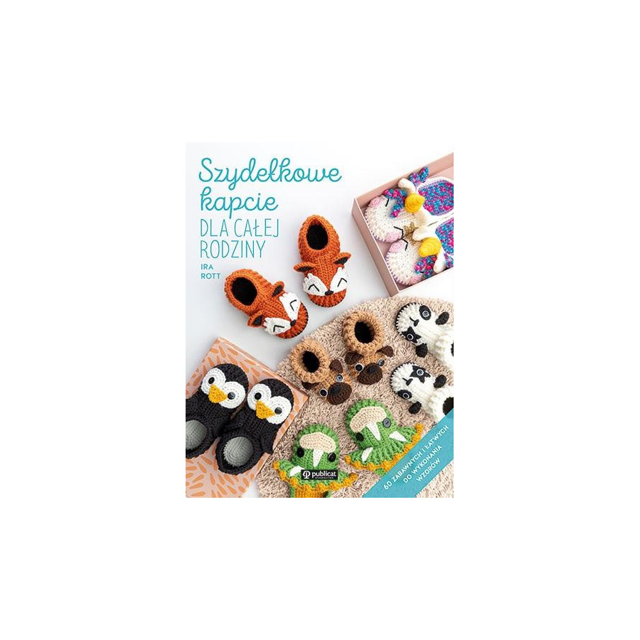 Wydziergaj urocze i wygodne kapcie dla całej rodziny. Najpierw zdecyduj, który z modeli będzie najbardziej odpowiedni: wsuwane klapki, standardowe pantofle czy wysokie bambosze za kostkę. Następnie dopasuj rozmiar (dla dziecka lub dla dorosłego), co ułatwi miarka na skrzydełku książki. Na koniec wybierz jeden z 20 zwierzęcych motywów: dzielnego dinozaura, wesołego pingwina, psotnego szopa, słodkiego słonika lub magicznego jednorożca. Każdy projekt został omówiony krok po kroku oraz rozpisany na schematach. Zaznaczono też poziom trudności oraz wskazówki dla leworęcznych.