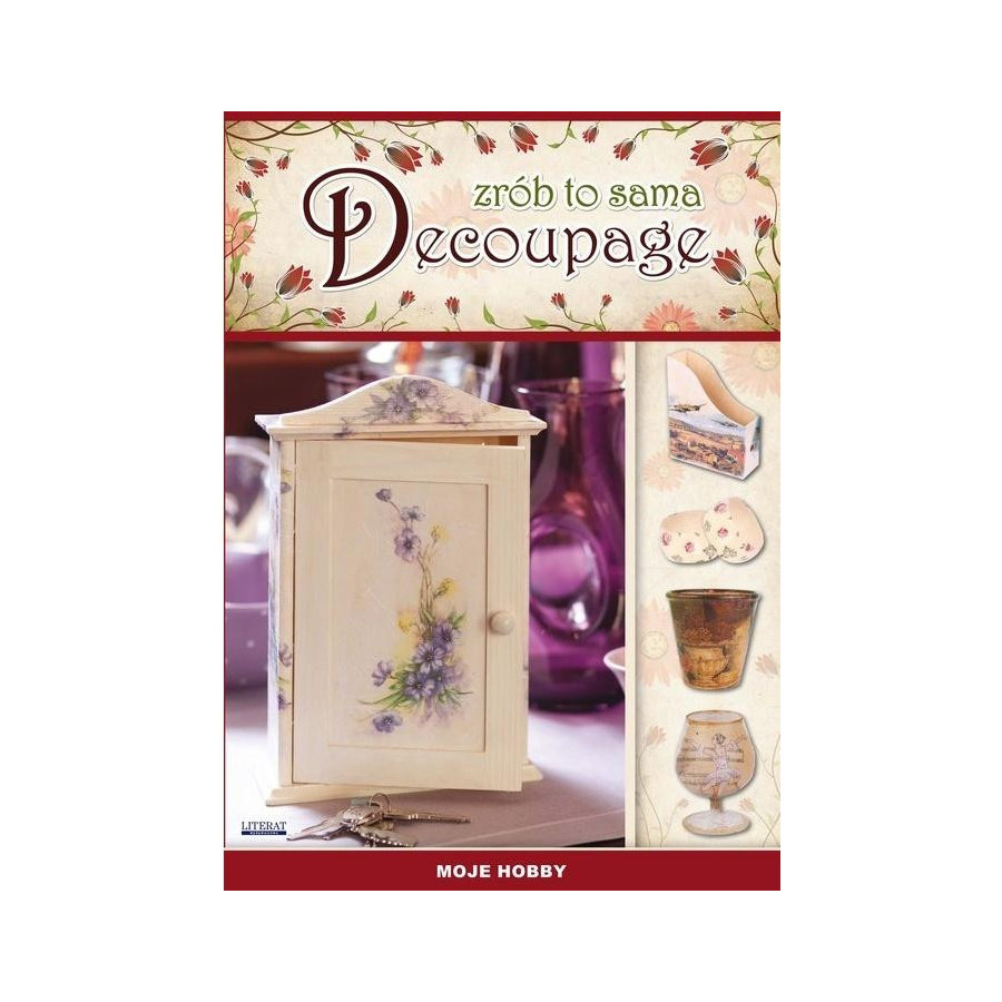 Decoupage to technika ozdabiania przedmiotów za pomocą serwetek i papierów. Jest łatwa, nie wymaga dużych nakładów finansowych, a przy tym jest niezwykle efektowna. Ozdabiać można wszystko, począwszy od drewna, a skończywszy na ubraniach; jest to również metoda na nadanie nowego życia starym meblom. Książka w przystępny sposób pokazuje, od czego zacząć, jak stawiać pierwsze kroki w decoupage, w jaki sposób uzyskać określone efekty oraz na co zwracać szczególną uwagę. Dowiesz się, jak niebanalnie ozdobić np. komódkę na drobiazgi, gazetownik, skarbonkę, wieszak, podkładkę pod kubek, zegar, pojemnik na wino, bransoletę czy ramkę na zdjęcia.