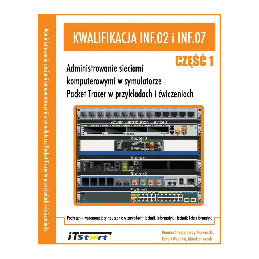 Książka Kwalifikacja: INF.02 i INF.07 Administrowanie sieciami komputerowymi w symulatorze Packet Tracer w przykładach i ćwiczeniach Część I jest podręcznikiem wspomagającym nauczanie w zawodach Technik Informatyk i Technik Teleinformatyk. Może być wykorzystywana podczas poruszania zagadnień z projektowania, zarządzania i administrowania sieciami komputerowymi. Wykorzystując symulację komputerową pomaga zrozumieć konfigurację usług, protokołów oraz urządzeń sieciowych. W części końcowej książki znajduje się zadanie projektowe, a także test sprawdzający wiadomości teoretyczne oraz lista plików będącymi rozwiązaniami ćwiczeń kontrolnych.
