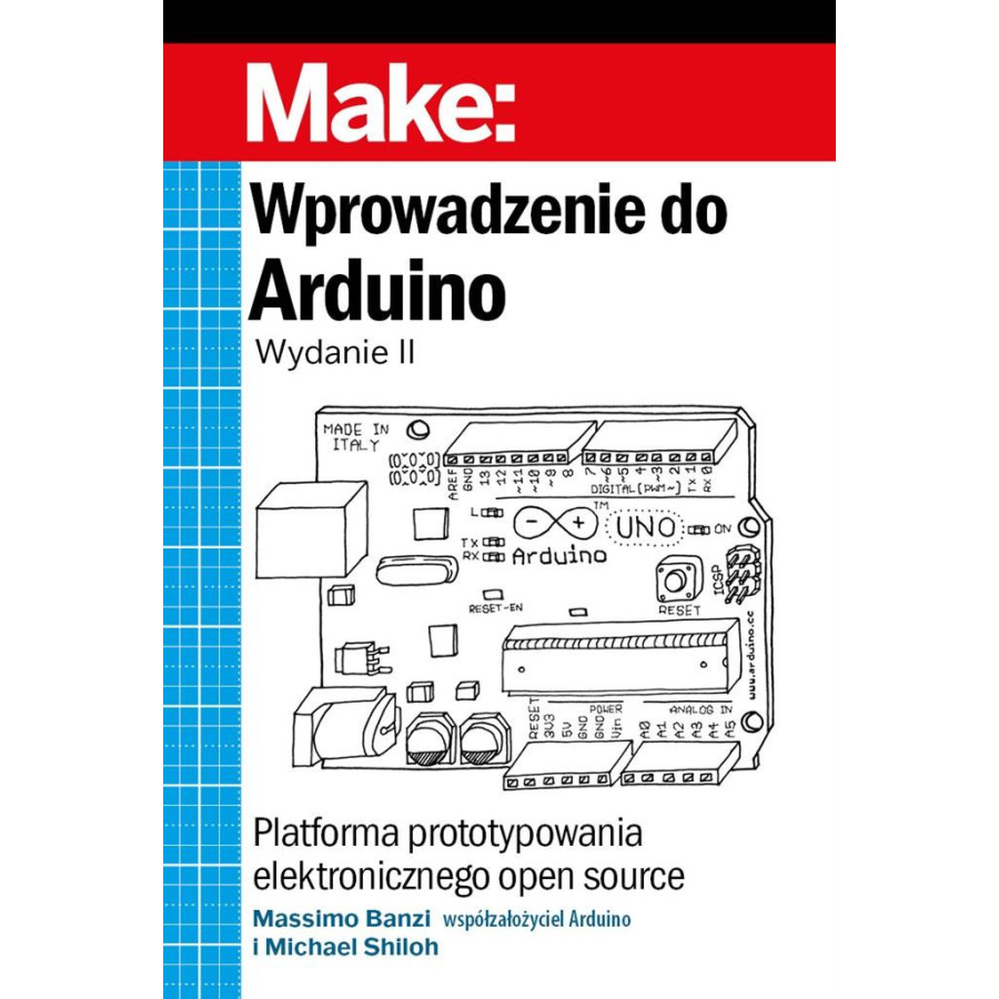 Platforma prototypowania elektronicznego open source Massimo Banzi współzałożyciel Arduino i Michael Shiloh Arduino to otwarta platforma prototypowania elektronicznego, która zawojo-wała świat projektantów i hobbystów. To solidne i dogłębne wprowadzenie, uaktualnione o najnowsze wydanie IDE i nowe płytki oparte na procesorach ARM, pomoże od razu przejść do tworzenia projektów. Znajdziesz tu wszystko, co potrzeba, od uzyskania wymaganych komponentów, aż po finalne szlify swo-jego projektu! Wprowadzenie do Arduino jest proste! Do wykorzystania wstępnych przykładów z tego przewodnika potrzebne jest jedynie samo Arduino Uno lub Nano, kabel USB oraz dioda LED. Łatwe w użyciu, bezpłatne środowisko projektowe Arduino działa w systemach Mac, Windows i Linux. Dołącz do tysięcy hobbystów, którzy odkryli już tę wspaniałą platformę eduka-cyjną! Główne zagadnienia przedstawione w książce: o Projektowanie interaktywne i fizyczne przetwarzanie o Płytka Arduino i jej środowisko programistyczne o Podstawy elektrotechniki i elektroniki o Prototypowanie na płytce stykowej bez lutowania o Rysowanie i czytanie schematów elektronicznych o Używanie środowisk Cloud IDE i nowego Arduino IoT Cloud o Budowanie własnego systemu podlewania ogrodu o Usprawnianie dostępu do Internetu przez Wi-Fi Napisane przez Massimo Banzi, współzałożyciela Arduino i Michaela Shiloha, lidera edukacyjnego Arduino.