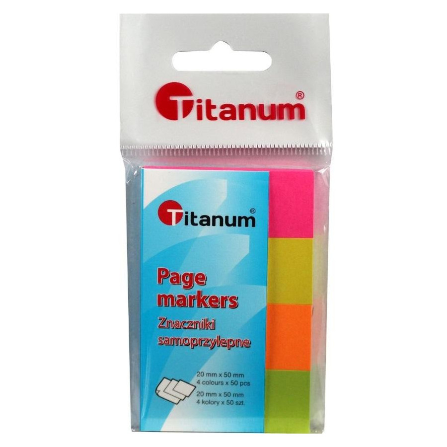 Zakładki papierowe, 4 kolory fluorescencyjne w rozmiarze 20 x 50 mm. 50 karteczek z każdego koloru.