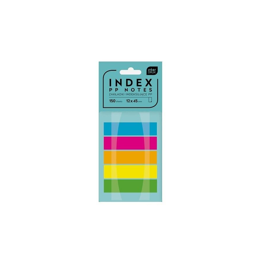 Zakładki indeksujące wielokrotnego użytku. Nie pozostawiają śladu po odklejeniu. Można po nich pisać. Wygodny podajnik umożliwia wyciągnięcie jednej karteczki na raz. Format zakładki: 12x45 mm. 5 kolorów. 150 szt.