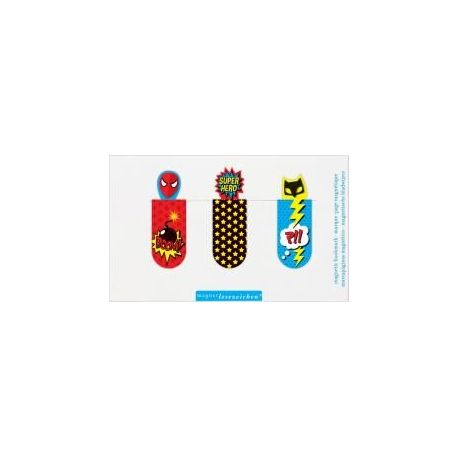 Zakładki magnetyczne - Superbohaterowie. Pięknie ilustrowane zakładki z wystającymi, ozdobnymi elementami. Idealne do zaznaczania ostatnio czytanych lub ulubionych fragmentów książek. Doskonale sprawdzają się w indeksowaniu notatek, dokumentów w biurze, w szkole i w domu. Każdy zestaw zawiera 3 zakładki o różnych wzorach, skoordynowanych tematycznie. Stwórz własną kolekcję z zakładkami: Czas na czytanie.