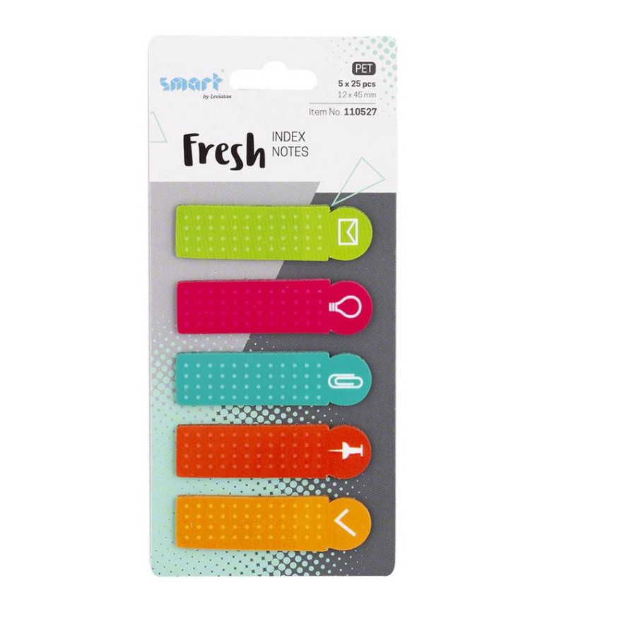Absolutnie świeże i wyjątkowe. Doskonałe wyróżnienie wskazanego tekstu. Zakładki są wykonane z folii PET, można je wielokrotnie przyklejać i odklejać, można po nich pisać.Każdy komplet to 5 wzorów po 25 zakładek o wymiarach 45x12 mm.