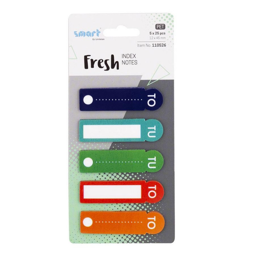 Absolutnie świeże i wyjątkowe. Doskonałe wyróżnienie wskazanego tekstu. Zakładki są wykonane z folii PET, można je wielokrotnie przyklejać i odklejać, można po nich pisać.Każdy komplet to 5 wzorów po 25 zakładek o wymiarach 45x12 mm.