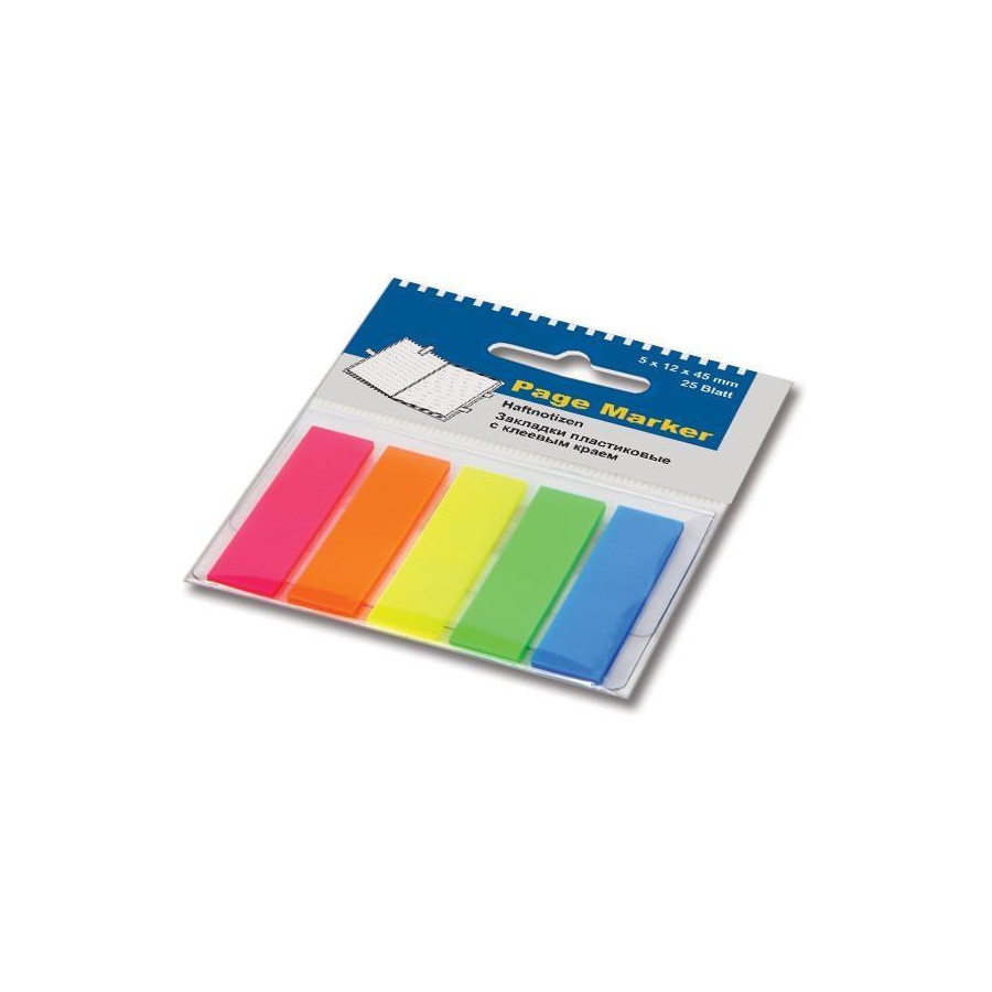 Zakładki indeksujące do zaznaczania stron, segregowania informacji. Można je wielokrotnie odklejać i przyklejać nie niszcząc powierzchni, 45x15mm 5 kolorów błyszczących (5x25 fiszek).