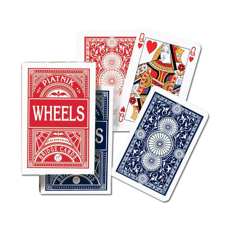 Klasyczne, wysokiej jakości karty do pokera o fakturowanej powierzchni. ''Wheels'' - najtańsze w swojej klasie. Talia 55 plastikowanych kart o pokerowym wymiarze 63 x 88 mm i gramaturze 310.
