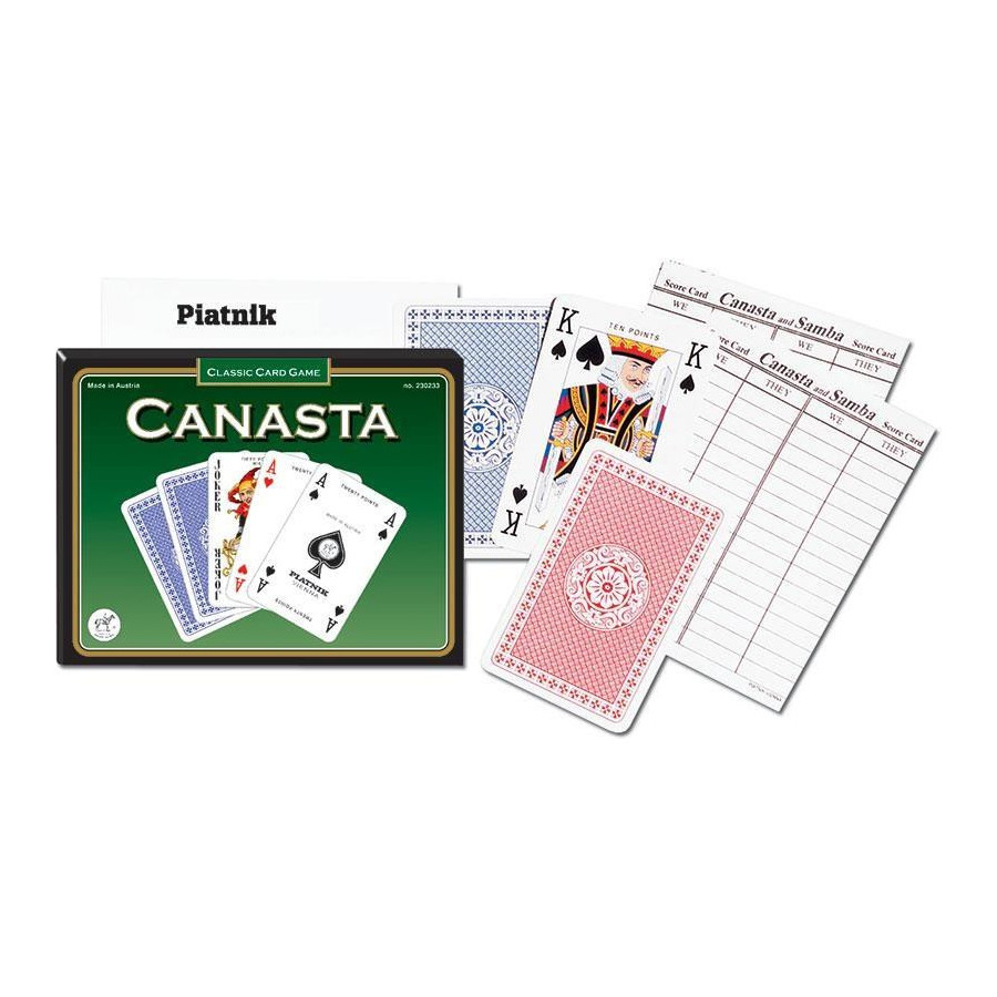 Klasyczne, wysokiej jakości karty do kanasty renomowanej firmy Ferd. Piatnik & Sohne. W komplecie 2 talie w efektownym Piatnikowskim pudełku. Talie składają się z 55 plastikowanych kart o wymiarach 58 x 89 mm i gramaturze 310. Idealne zarówno do kanasty jak i innych gier. Wyroby wiedeńskiej fabryki Ferd. Piatnik & Sohne od 1824 roku urzekają bogactwem wzorów i perfekcją wykonania. Jakość i tradycja!