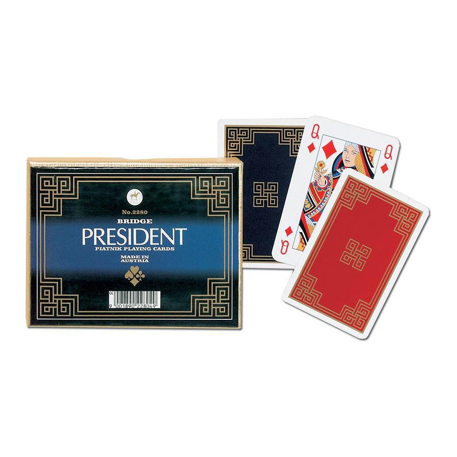 Najwyższej jakości karty do gry renomowanej firmy Ferd. Piatnik & Sohne. W komplecie 2 talie w eleganckim, złoconym pudełku z charakterystyczną Piatnikowską poduszeczką. Rewersy (koszulki) nie tylko szlachetne, ale także symetryczne i wyraźnie różniące się od siebie. Te cechy sprawiają, że to doskonałe karty dla wszystkich, od początkujących po wytrawnych graczy. Talie składają się z 55 plastikowanych kart o wymiarach 58 x 89 mm i gramaturze 310. Idealne zarówno do brydża, pokera, remika jak i innych gier. Wyroby wiedeńskiej fabryki Ferd. Piatnik & Sohne od 1824 roku urzekają bogactwem wzorów i perfekcją wykonania. Jakość i tradycja!