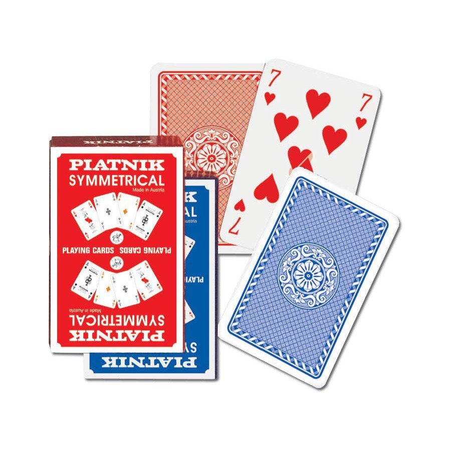 Specjalne, wysokiej jakości karty do gry renomowanej firmy Ferd. Piatnik & Sohne. Karty w 100% symetryczne - nawet asy i nieparzyste blotki. Talia składa się z 55 plastikowanych kart o wymiarach 58 x 89 mm i gramaturze 310. Idealna zarówno do brydża, pokera, remika jak i innych gier. Wyroby wiedeńskiej fabryki Ferd. Piatnik & Sohne od 1824 roku urzekają bogactwem wzorów i perfekcją wykonania. Jakość i tradycja!