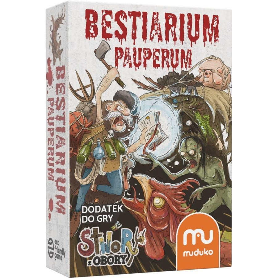 Bestiariusz dla ubogich to rozszerzenie talii gościńca o 30 nowych stworów i 10 wydarzeń mocno nawiązujących do słowiańskiej kultury i demonologii. Oprócz tego w zestawie 6 nowych kart Targowiska, 6 postaci oraz 1 pusta karta potwora i 1 bohatera. Stwory z Obory to gra karciana, która stanowi połączenie słowiańskiego klimatu i wiejskiego fantasy. Wszystko z przymrużeniem oka, dużą dawką satyry i ozdobione świetnymi ilustracjami.