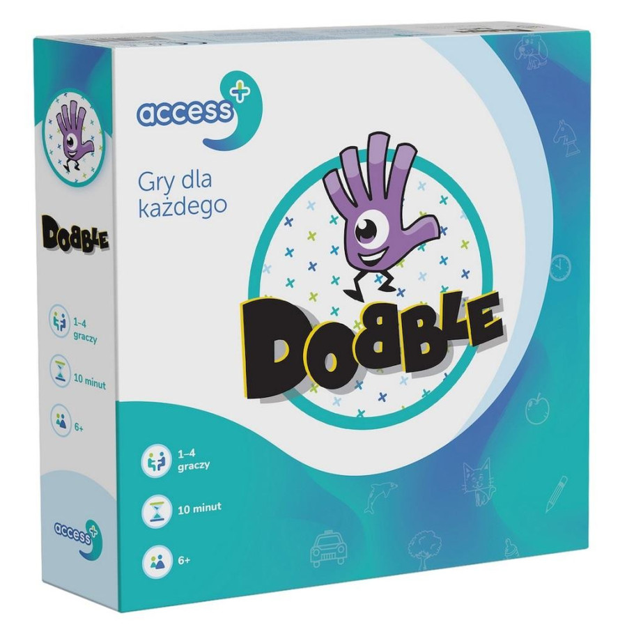 Dobble Access+ to zupełnie nowa wersja popularnej na całym świecie gry, w której liczą się spostrzegawczość i refleks. Dzięki większym kartom i symbolom każdy może wziąć udział w wyzwaniu! Znajdź symbol łączący Twoją kartę z kartą na środku stołu, zanim zrobią to pozostali gracze.