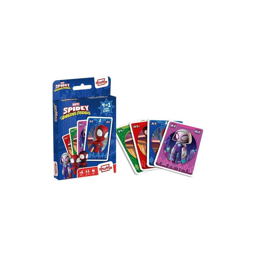 W naszych grach Shuffle 4w1 przenosimy zwykłą talię kart do innej przestrzeni. Najbardziej znane rozgrywki z Twoimi ulubionymi bohaterami. Co więcej każda talia kart to godziny rozrywki, ponieważ możesz grać w cztery różne gry. Kwartet, gra akcji, Piotruś oraz Snap to przepis na brak nudy. Zawartość 32 karty