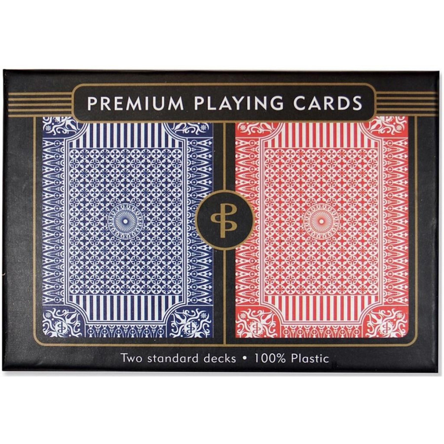 Zestaw tradycyjnych kart marki Peter Pauper Press. Zawiera po 2 talie 52 kart oraz dodatkowo po 2 szt kart Joker - standardowe talie wykorzystywane w wielu grach. Symbole figur i kolorów mają duże i czytelne oznaczenia.