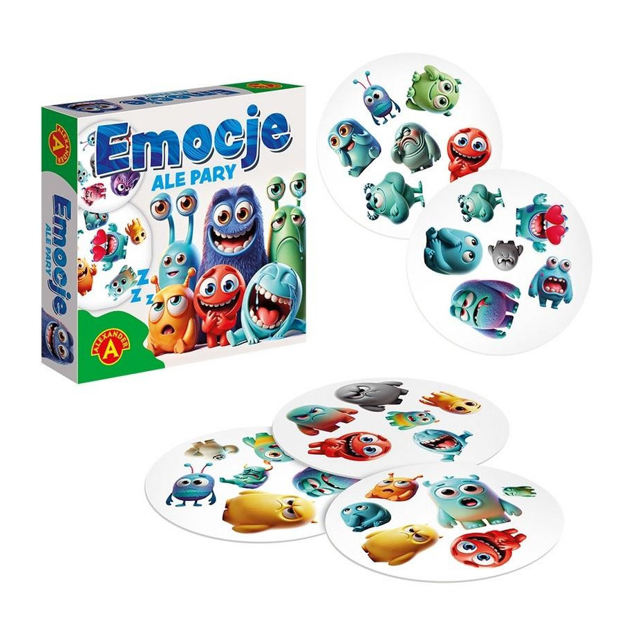 Ale Pary - Emocje to wyjątkowa gra, która poprzez zabawę, może pomóc dzieciom zrozumieć, co czują i pokazać, jak radzić sobie z różnymi emocjami. Gra polega na znalezieniu wspólnego obrazka przedstawiającego emocję na dwóch kartach. Ale uwaga! Emocje mogą różnić się wielkością, co sprawia, że wyzwanie jest jeszcze większe. Gra toczy się w dynamicznym tempie, więc potrzebna jest koncentracja i szybka reakcja.