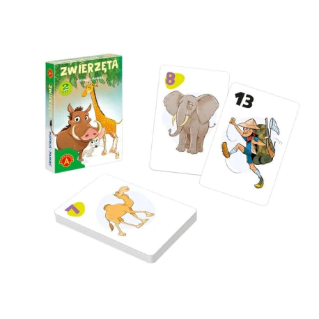 Zestaw 25 kart z obrazkami, dzięki którym można zagrać z dziećmi w dwie podstawowe gry karciane Piotruś i Pamięć. Obie wspaniale ćwiczą spostrzegawczość, rozwijają skojarzenia oraz uczą zachowań społecznych. To idealny wstęp do świat gier dla najmłodszych. Humorystyczne ilustracje zwierząt dodają zabawie dodatkowego kolorytu.