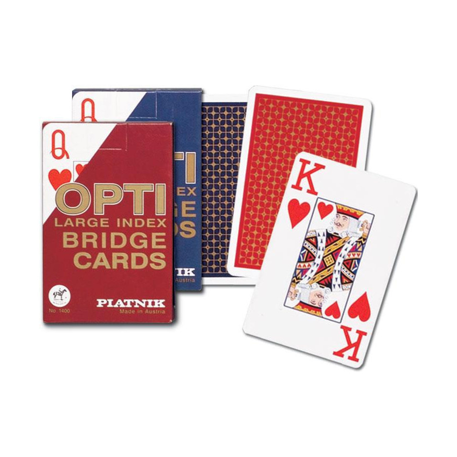 Najwyższej jakości karty do gry renomowanej firmy Ferd. Piatnik & Sohne. Na awersach powiększone indeksy. Dla osób słabiej widzących oraz do rozgrywek, w których potrzebna jest lepsza widoczność. Talia składa się z 55 plastikowanych kart o wymiarach 58 x 89 mm i gramaturze 310. Idealna zarówno do brydża, pokera, remika jak i innych gier. Wyroby wiedeńskiej fabryki Ferd. Piatnik & Sohne od 1824 roku urzekają bogactwem wzorów i perfekcją wykonania. Jakość i tradycja!