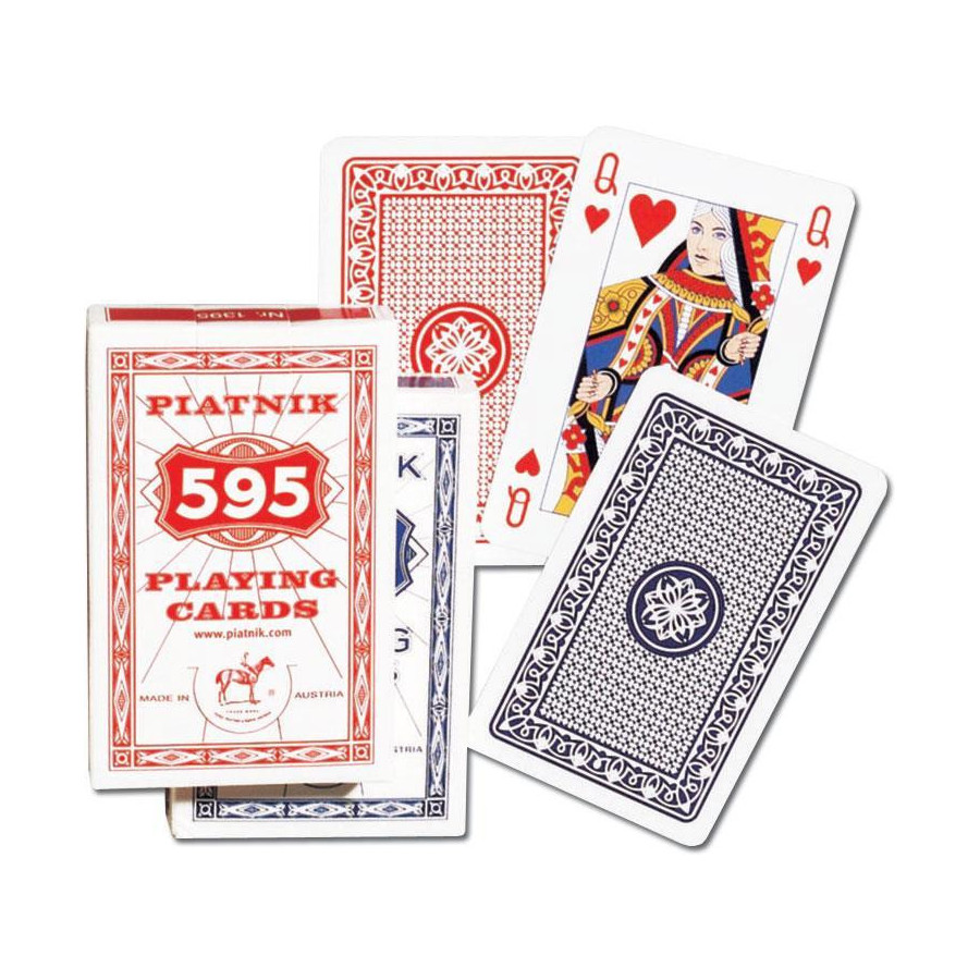 Klasyczne, wysokiej jakości karty do gry renomowanej firmy Ferd. Piatnik & Sohne. Starsi gracze mogą pamiętać, że dawniej karty "595" nosiły nazwę "Lord". Talia składa się z 55 plastikowanych kart o wymiarach 58 x 89 mm i gramaturze 310. Idealna zarówno do brydża, pokera, remika jak i innych gier. Wyroby wiedeńskiej fabryki Ferd. Piatnik & Sohne od 1824 roku urzekają bogactwem wzorów i perfekcją wykonania. Jakość i tradycja!